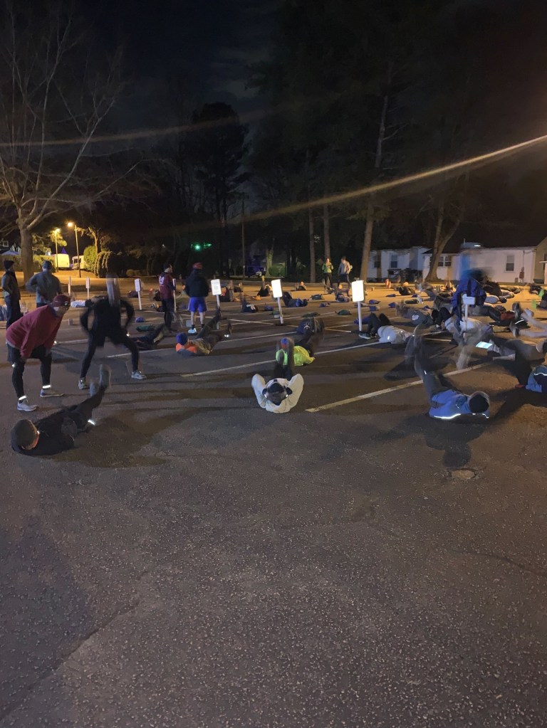 This 10 mile ruck. Strap 30 pounds (or so) on your back in a backpack, a weighted vest, whatever you prefer. And come on a meandering journey all through the town of Davidson. We’ll stop every mile for a “pain station” – 12 minutes of stationary core and cardio.